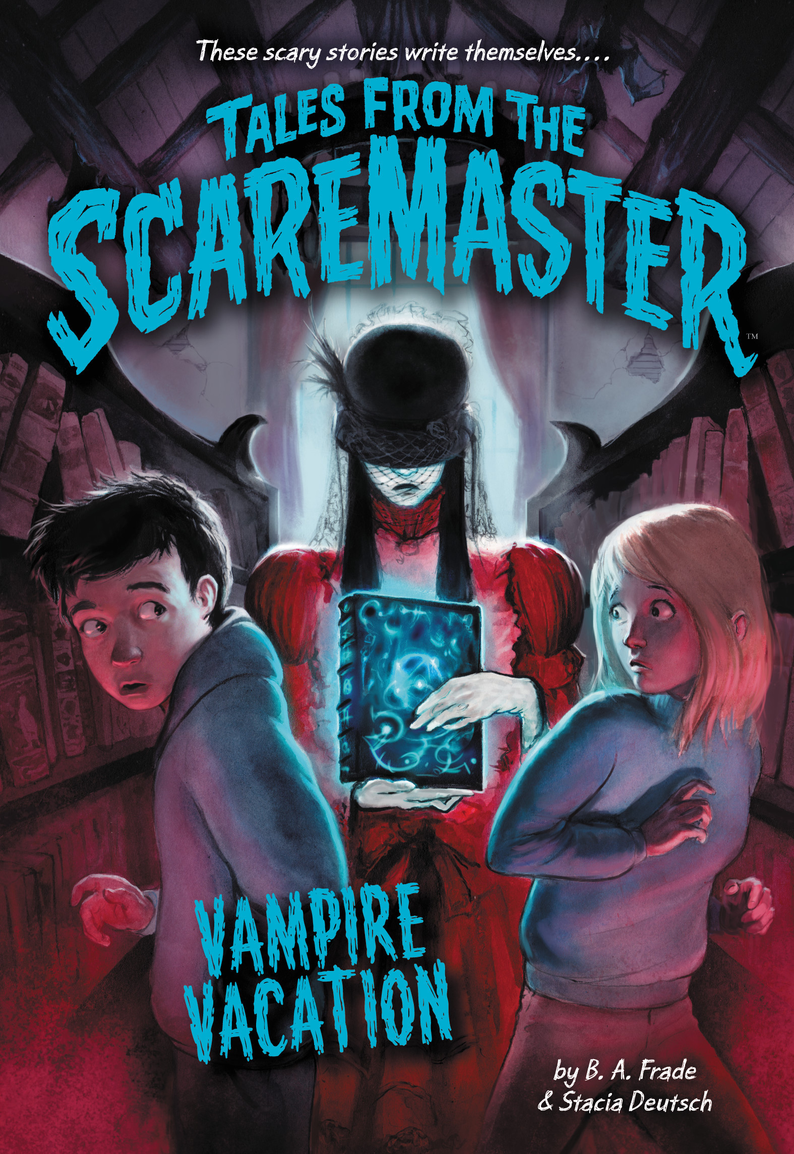 Enter Tales from the Scaremaster, a mysterious book with a mind of its own that starts writing Zoe and Matt's story. The book weaves a tale of ski lodge neighbors with a bloodsucking secret--could it be that their sneaky, bizarre next door neighbors at the lodge are actually vampires? It's up to Zoe and Matt to outwit and outlast the Scaremaster, and get to the bottom of this vampiric mystery....before they end up vampire victims!