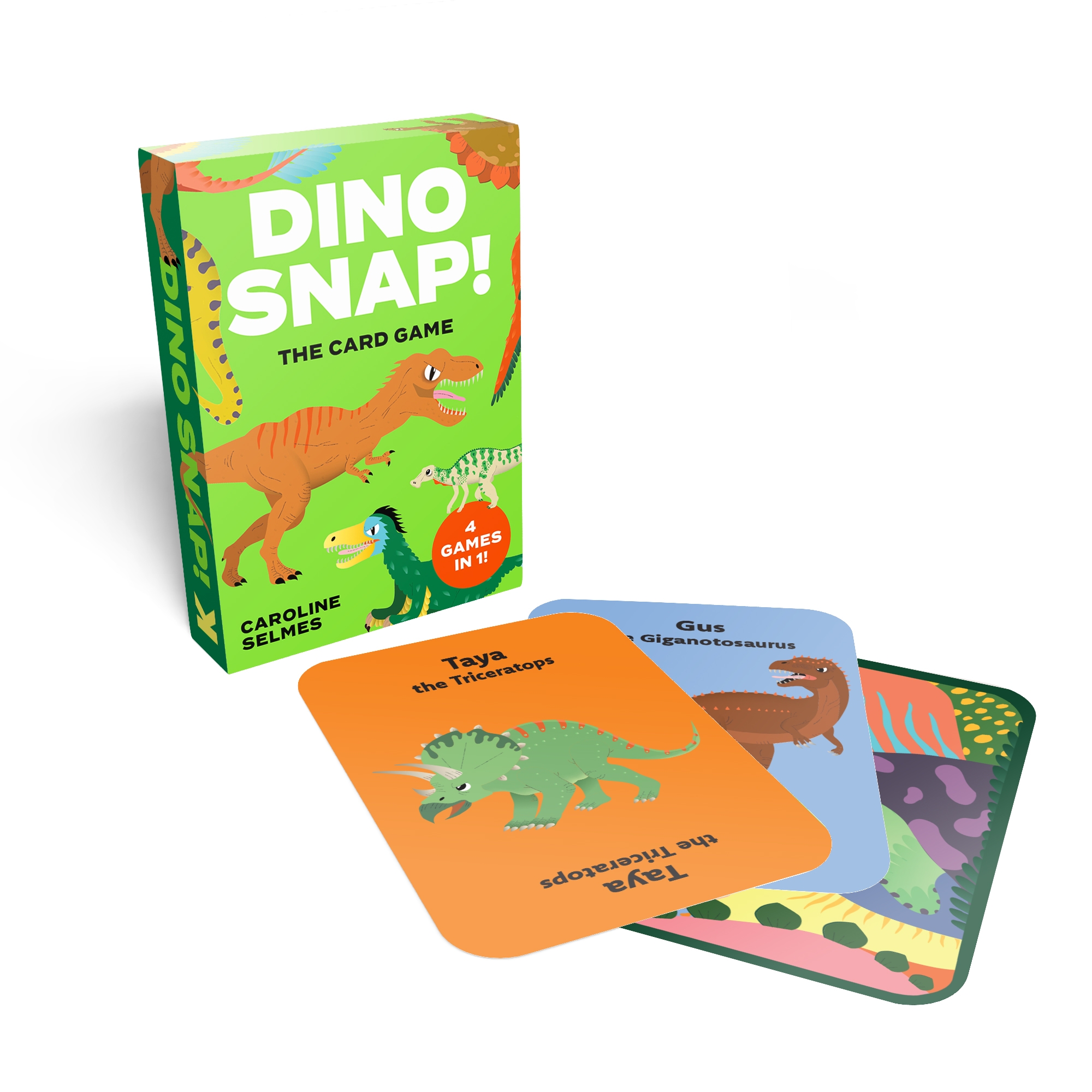 Stegosaurus, Tyrone the T-Rex and more in four fun-filled card games.