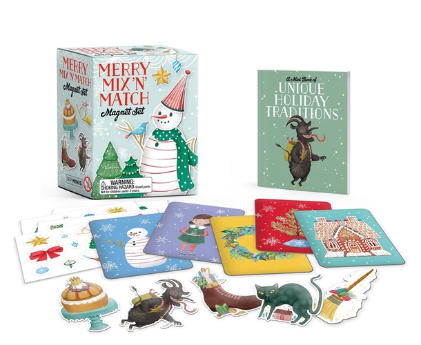 Specifications: 5 full-color, holiday-themed magnets (Christmas tree, snowman, a gingerbread house, elf, and wreath) and 5 sheets of mix-and-match removable stickers to decorate and accessorize the magnets; also includes 5 additional decorative magnets
