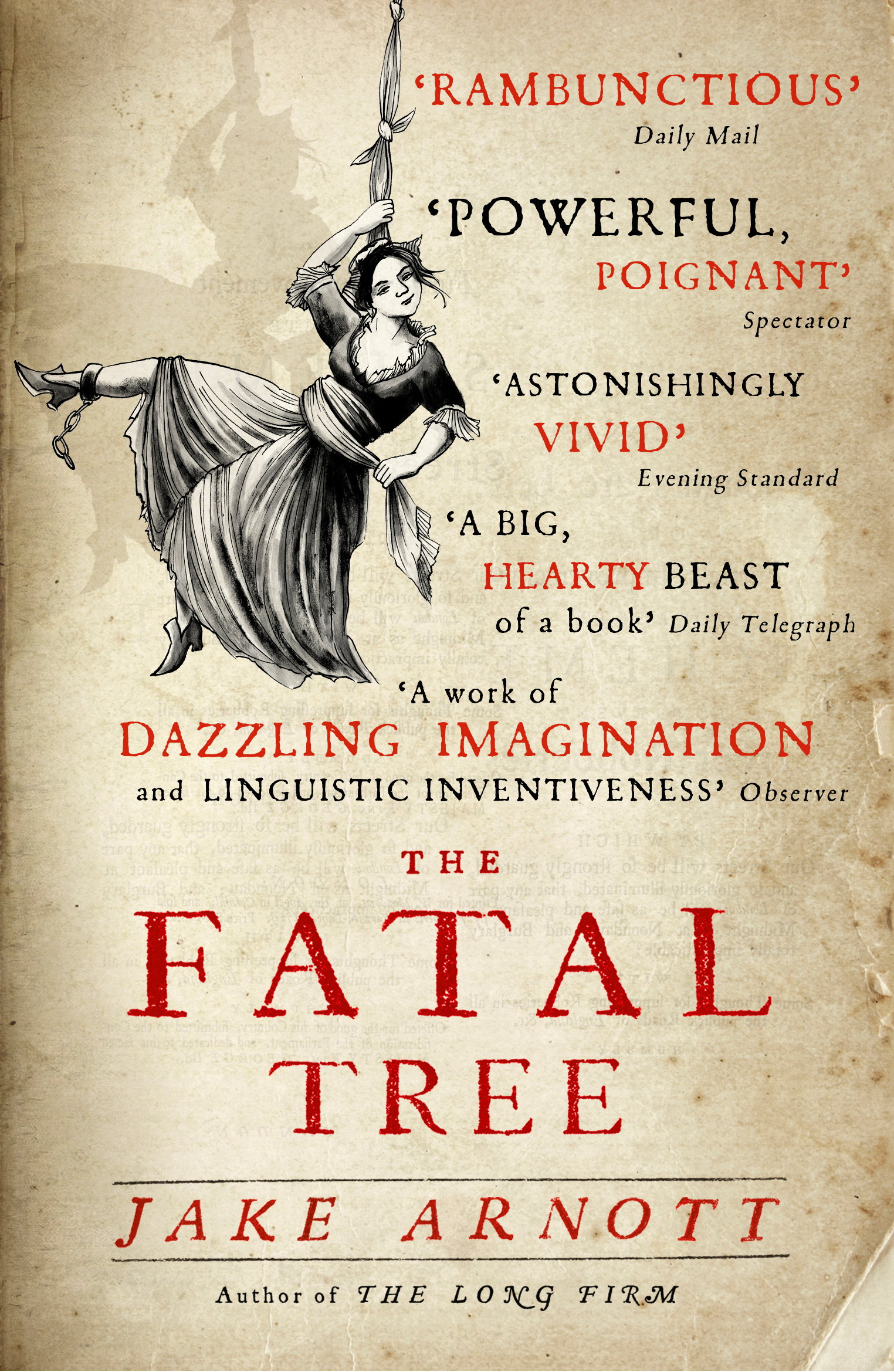 Read MoreA work of dazzling imagination and linguistic inventiveness - ObserverA rambunctious narrative of venery, theft, death and a devil-may-care braggadocio, its doomed love story undercuts and counterpoints the swagger with a touching melancholy. Bess, Jack and Jonathan were real people and this confident linguistic pastiche reimagines them with infectious energy. - Daily MailJake Arnott, who is probably best known for excellent novels such as The Long Firm about London gangsters in the 1960s, has done much more than update the work of his 18th-century predecessors. Unlike them, he shows the citizens of Romeville as people, not as folk heroes or bogeymen . . . Arnott explores what poor Bess calls 'the felony of love', a crime that is not on the statute book. The result is powerful, poignant and readable. - SpectatorJack's awkward courtship of Bess is a highlight of the book - Arnott's best so far - and genuinely moving . . . an astonishingly vivid act of ventriloquy that breathes life into infamous corpses - Evening StandardThe narrative is woven through with vividly portrayed characters, from Bess and Jack themselves to the superbly realised, wonderfully named Punk Alice and Poll Maggot, the transvestite Princess Seraphina; and the mixed-race heavy, Blueskin. Arnott delights too in the secret language of thieves - ObserverBawdy and rich with vivid evocations of the past . . . The Fatal Tree is Arnott on beguiling form, with the libidinous Bess a wonderfully multifaceted character. Who would have thought that a cult crime writer would become the Daniel Defoe of our day? - i NewsA seductive, cunning tale of crime, punishment and love among the thieves, prostitutes and charlatans of 1720's London. Laced with vibrant detail and deliciously evocative period language, Arnott's atmospheric novel is a Hogarth print come to life . . . With a cast of delightfully convincing characters and lines that are reminiscent of Dickens or Wilde, Arnott has triumphantly breathed life into history - and the result is glorious. - AttitudeA dazzling mix of fact and fiction . . . the Hogarthian tale of a Harlot's Progress - Sunday Herald
