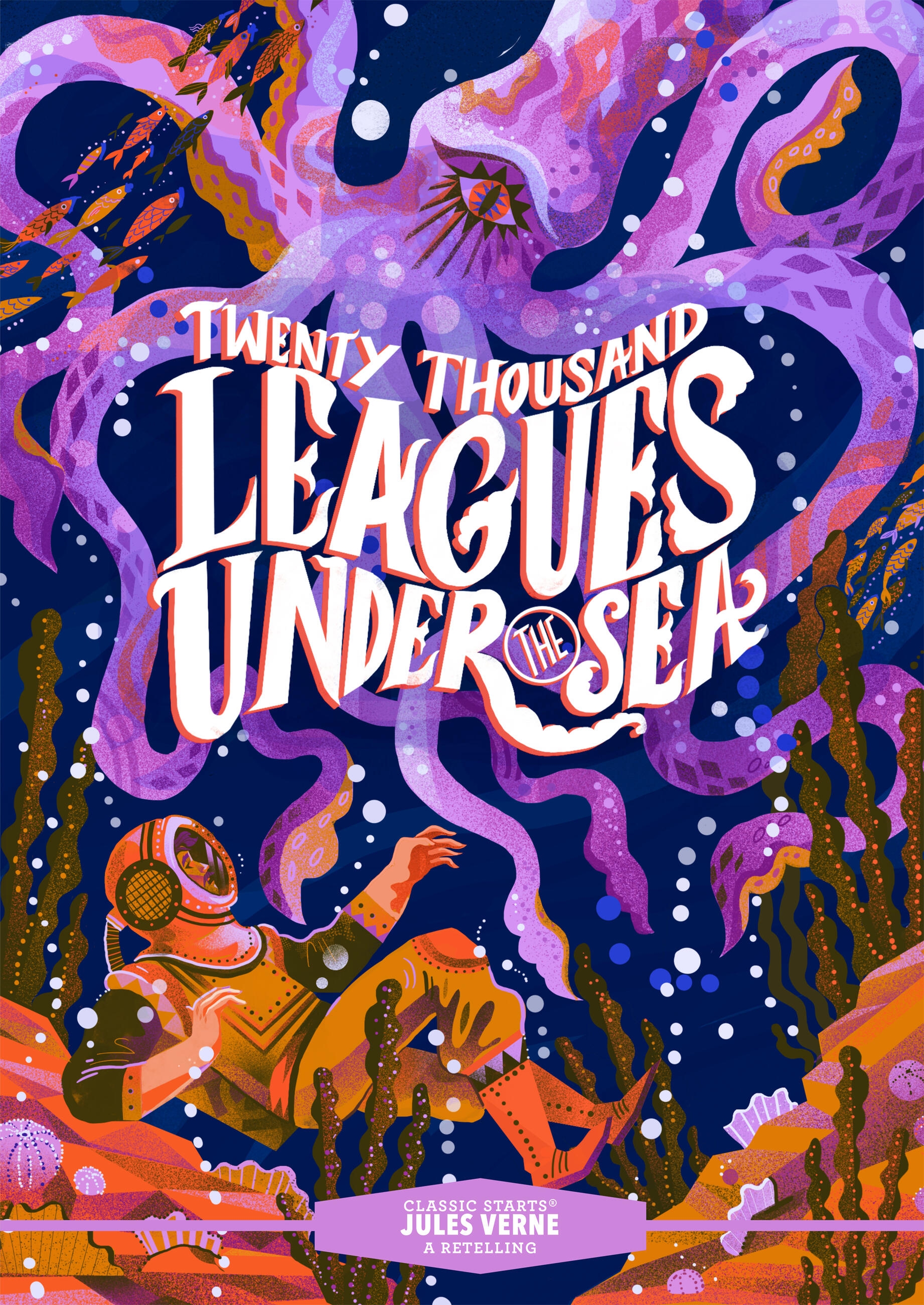 Explore the mysterious underwater world in this illustrated chapter-book retelling of Twenty Thousand Leagues Under the Sea, part of the bestselling Classic Starts series that has sold more than 8 million copies! Professor Aronnax embarks on an underwater exploration, only to be captured by Captain Nemo, the head of a submarine with a mysterious backstory. As they travel through underwater forests filled with enormous sea creatures, Professor Aronnax can t help but wonder: will he ever safely return to land? This retelling is the perfect way to introduce young readers to what is arguably Jules Verne s most popular sci-fi novel. The book also includes discussion questions.