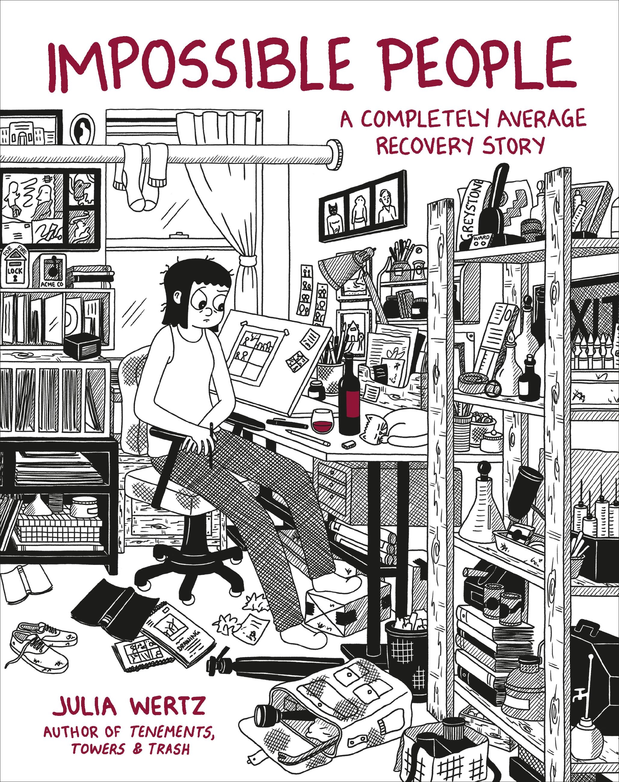 In her keenly observed graphic memoir, Impossible People, celebrated cartoonist Julia Wertz chronicles her haphazard attempts at sobriety and the relentlessly challenging, surprisingly funny, and occasionally absurd cycle of addiction and recovery.