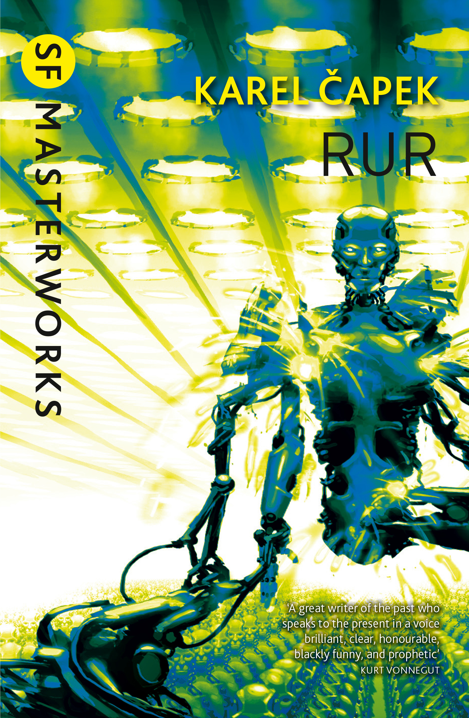 R.U.R. - written in 1920, premiered in Prague in 1921, and first performed in New York in 1922 - garnered worldwide acclaim for its author and popularized the word 'robot'. Mass-produced as efficient laborers to serve man, Capek's Robots are an android product-they remember everything but think of nothing new. But the Utopian life they provide ultimately lacks meaning, and the humans they serve stop reproducing. When the Robots revolt, killing all but one of their masters, they must strain to learn the secret of self-duplication. It is not until two Robots fall in love and are christened "Adam" and "Eve" by the last surviving human that Nature emerges triumphant.