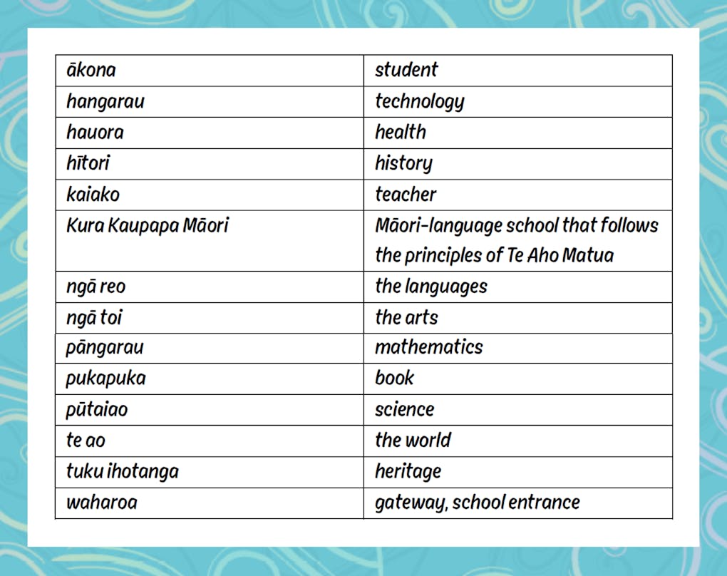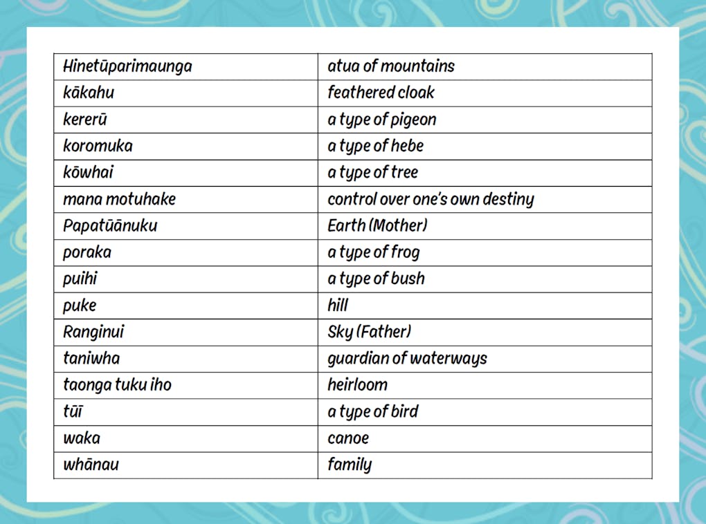 Incorporated into the pages of The Lost Words are many beautiful reo Māori kupu. A complete list of the words that readers can discover are below.