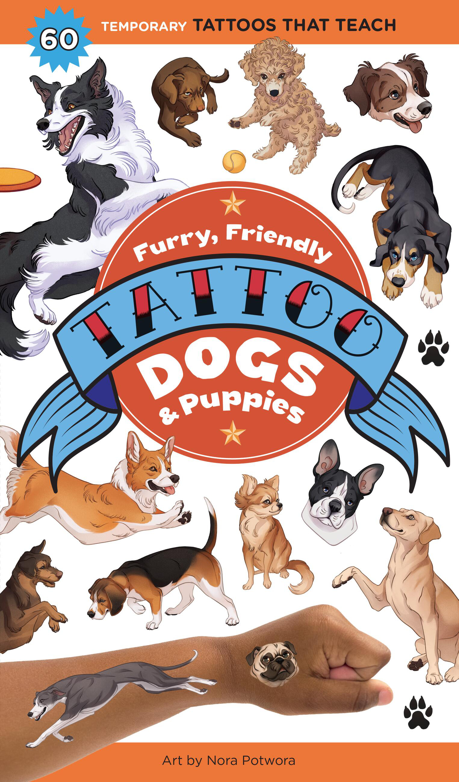 Dog-crazy kids can wear their love on their bodies with this collection of 60 colorful, kid-friendly temporary tattoos featuring illustrations of favorite breeds, playful poses, and irresistibly cute puppies. They're easy to apply with just a bit of water and last up to a week. The accompanying text pages in this Tattoos that Teach book feature fun facts about dogs and puppies, breeds and behaviors, and more. Kids will love showing off these temporary tattoos and discovering cool dog facts!