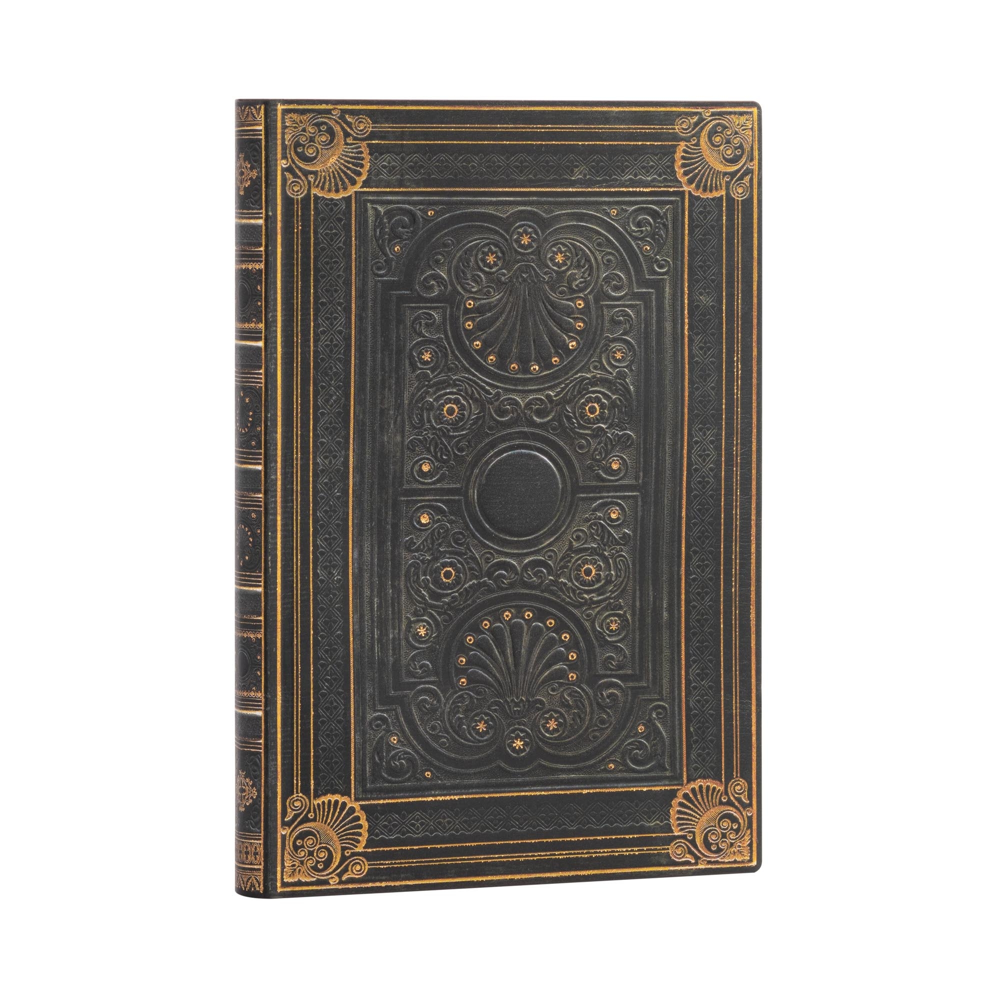Paperblanks Nocturnelle Flexi softcover notebook, a reproduction of an antique French binding, is based on a cover designed in 1829 by publishers A. & W. Galignani for The Poetical Works of Thomas Moore. This notebook cover suggests the fine Moroccan leather, structural sturdiness, careful finishing and ridged spine preferred for bindings of that era.