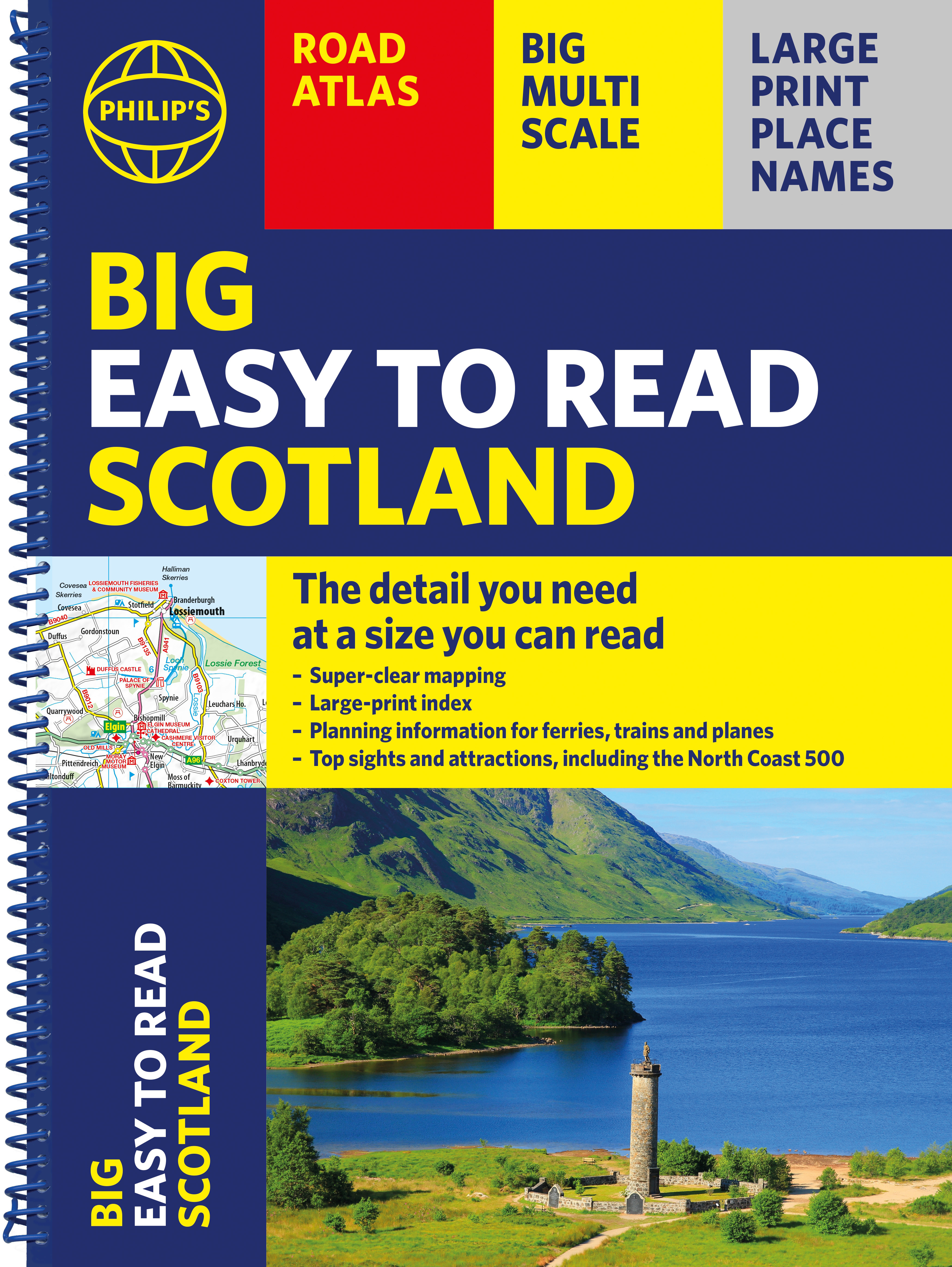 Philip's Big Easy Read Scotland Road Atlas is an exceptionally clear guide to the best of Scotland from the market-leading map makers. Reliable and up to date, the fully indexed mapping is accompanied by town plans, tourist and planning information, and spectacular scenic routes including the celebrated North Coast 500. The detailed yet easy-read maps show national parks, cultural and historical attractions, long-distance footpaths and much, much more.