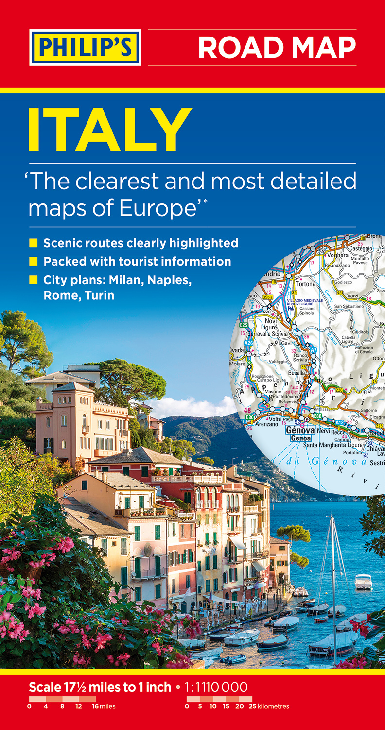 Philip's latest super-clear road map of Italy fully updated with the latest tourist, heritage and driving information